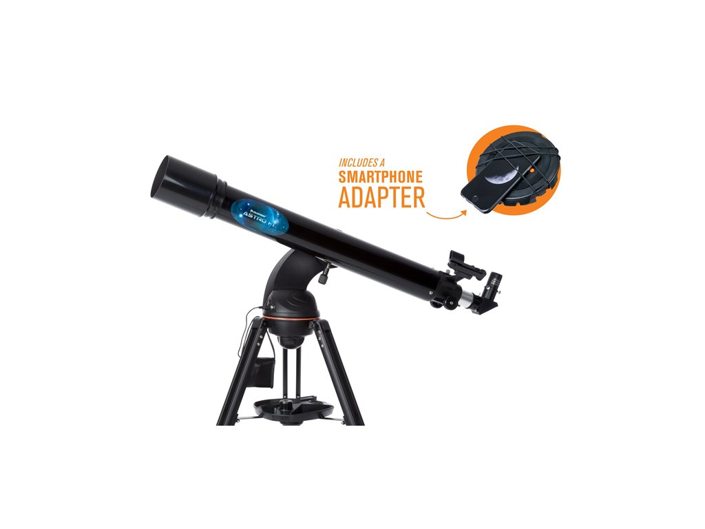 CELESTRON AstroFi 90mm je dalekohled typu refraktor s průměrem předního členu 90mm, ohniskovou vzdáleností 910mm (f/10,1) a s plně automatickým zaměřovácím systémem, který lze snadno ovládat pomocí chytrého telefonu či tabletu. Díky bezplatné aplikaci Celestron SkyPortal a technologii SkyAlign je vyhledávání hvězdných objektů intuitivní, rychlé a velmi jednoduché. Můžete vybrat z databáze 120 tisíc objektů a nebo jednoduše zaměřit telefonem objekt přímo na obloze a dalekohled jej automaticky najde a začne sledovat. Na displeji se vám současně zobrazí zajímavé informace o zvoleném hvězdném objektu, které vám pomohou pochopit krásy vesmíru. Díky kvalitní optice tak můžete sledovat v jemných detailech třeba krátery Měsíce, prstence Saturnu, velkou červenou skvrnu Jupitera, mlhoviny v souhvězdí Orionu či tisíce dalších hvězdných objektů. Na základě vaší polohy dokáže systém sám vygenerovat nabídku nejzajímavějších nebeských těles, které lze v daný okamžik na obloze vidět.