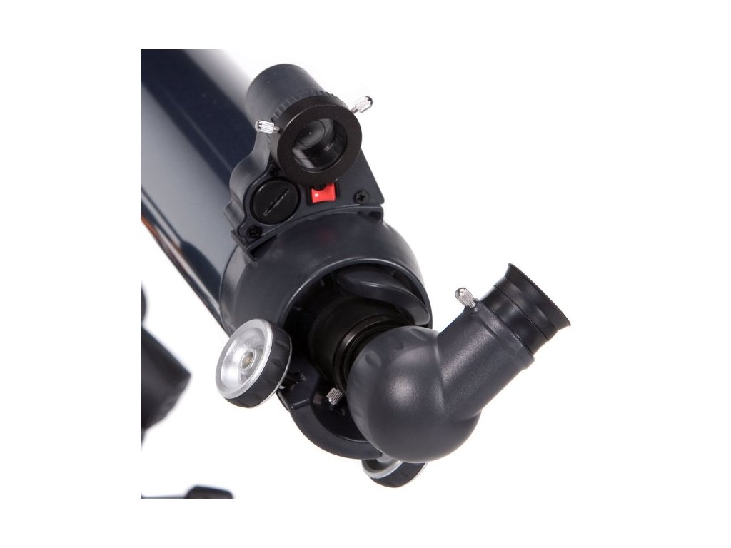 Vysoká kvalita použitých optických prvků a plné ošetření vícenásobnými antireflexními vrstvami nabízí pro tuto třídu dalekohledů neobvykle ostrý a vysoce kontrastní obraz. Předinstalovaný hledáček dalekohledu je typu Star pointer (červený bod) a umožní Vám rychle a snadno najít objekt, který chcete pozorovat. V základní výbavě refraktorů (čočkových dalekohledů) je převracecí hranol, dávající stranově i výškově správně orientovaný obraz.