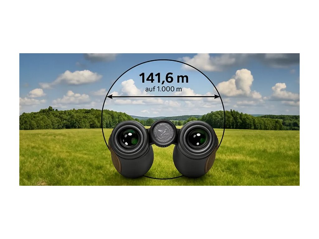 NXT 8x42 ponúka pomerne veľké zorné pole 141,6 metra. Najmä pokiaľ ide o jasné zacielenie na zver , tento ďalekohľad je ideálny pre širokú škálu denných a súmrakových lovíckych aplikácií vďaka jasnému, vysoko kontrastnému obrazu bez odleskov a nízkej hmotnosti. Optická kvalita, ostrosť detailov a brilantnosť obrazu ponúkajú poľovníkovi ohromujúci zážitok zo sledovania.