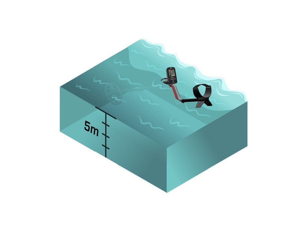 Detektor je stavaný na hľadanie bez obmedzenia. Vďaka krytiu IP68 bez problémov zvláda vodu, blato aj prach a zachováva plný výkon aj v náročných podmienkach. Plná vodotesnosť až do hĺbky 5 metrov umožňuje hľadať v potokoch, pri brehoch, na mokrom piesku aj priamo pod hladinou.