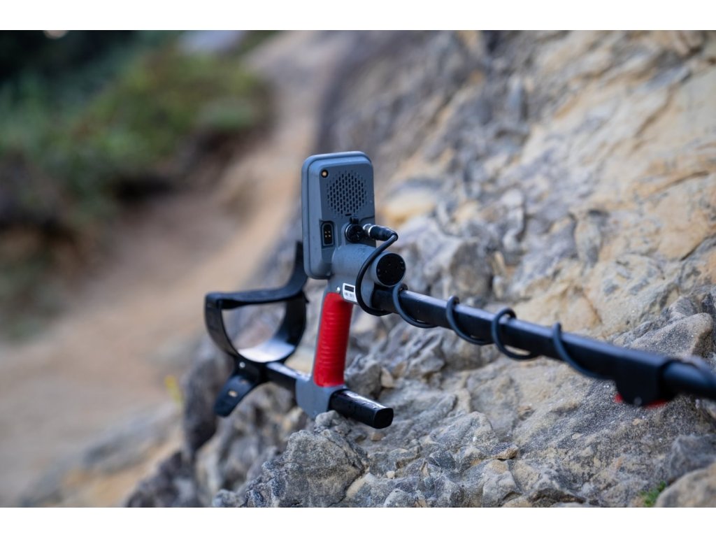 Detektor je plne vodotesný do 5 metrov (IP68) a pripravený na hľadanie na plážach, pri vode aj v mokrom teréne. Prehľadný červený monochromatický displej zostáva dobre čitateľný aj za šera, zatiaľ čo bezdrôtové slúchadlá ML60 s Bluetooth LE Audio a vibrácie v rukoväti zaisťujú okamžitú a spoľahlivú odozvu na každý signál.