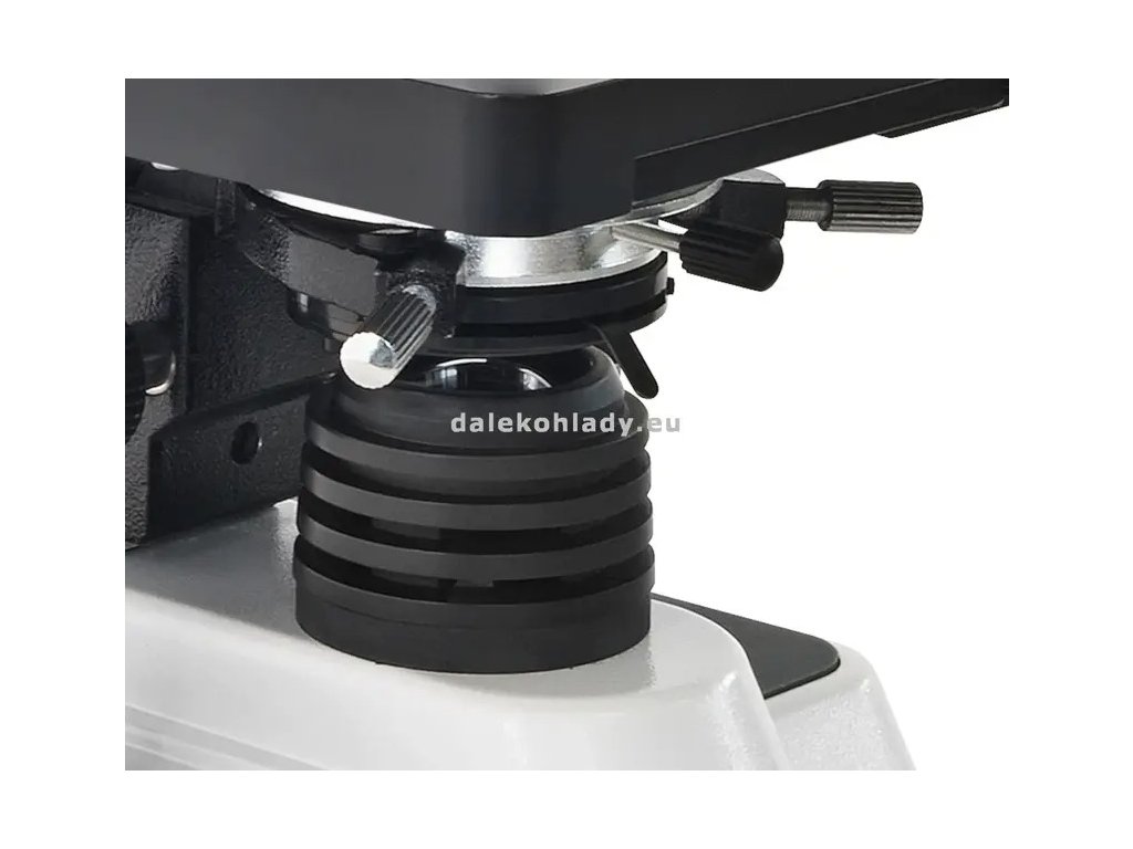 - Súčasťou mikroskopu je Abbeho kondenzor 1,25 N.A. s irisovou clonou a držiakom pre filter. Irisová clona pri veľkých zväčšeniach koriguje preexponovaný alebo príliš mäkký obraz.
