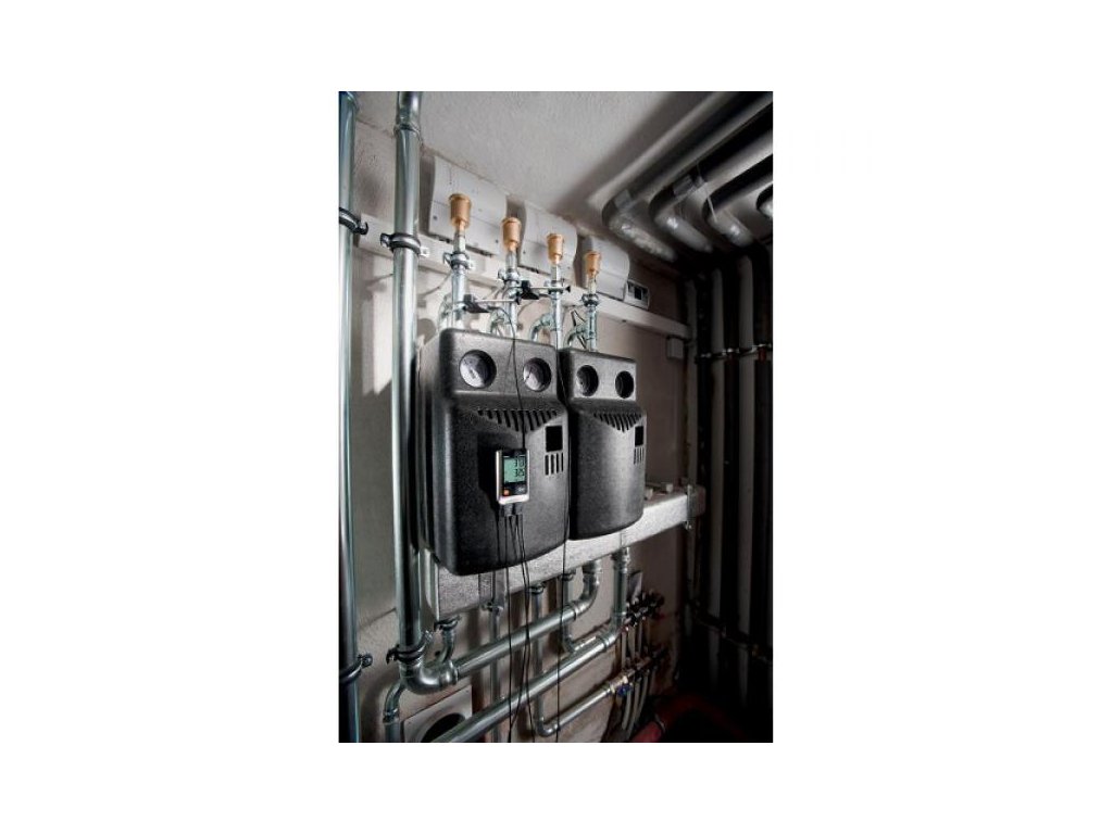 Teplota musí byť často sledovaná a zaznamenávaná na dvoch miestech súčasne. Pre túto úlohu sa najviac hodí záznamník testo 175 T3 s dvoma rozhraniami pre termočlánkové sondy (typ K a T). Pre kontrolu funkčnosti vykurovacieho zariadenia sa takým spôsobom musí napríklad merať a dokumentovať teplota vykurovanej vetvy a spiatočky. Taktiež chladiace zariadenia sa kontrolujú podobným spôsobom. Na jeseň začína obdobie kúrenia a s ňou tiež obdobie sťažností nájomníkov, že byt nie je vykurovaný na požadovanej úrovni. Pomocou záznamníka testo 175 T3 a flexibilných trubkových sond je možné skontrolovať teplotu vykurovaných častí jednotlivých radiátorov, aby ste mohli identifikovať a odstrániť príčiny (napr. upchatie).