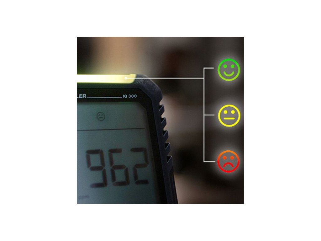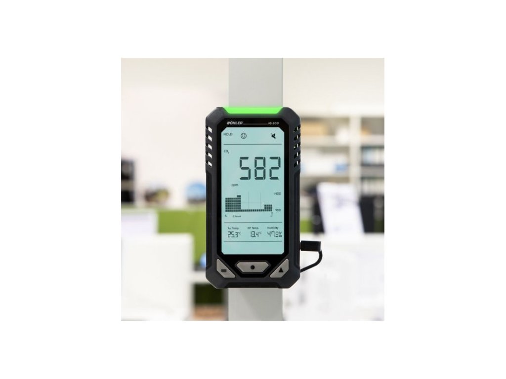 Prístroj Wöhler IQ 300 meria obsah CO2, teplotu, vlhkosť vzduchu a teplotu rosného bodu. Zobrazuje aktuálne hodnoty a ich vývoj. Pokiaľ je prekročená hraničná hodnota, prístroj vydá jasné varovanie zvukovým signálom. Je preto ideálny pre hodnotenie vnútornej klímy a stavu vetrania v obytných miestnostiach, školách , zdravotníckych zariadeniach a všade tam , kde sa nachádza väčší počet ľudí v uzavretých priestoroch.