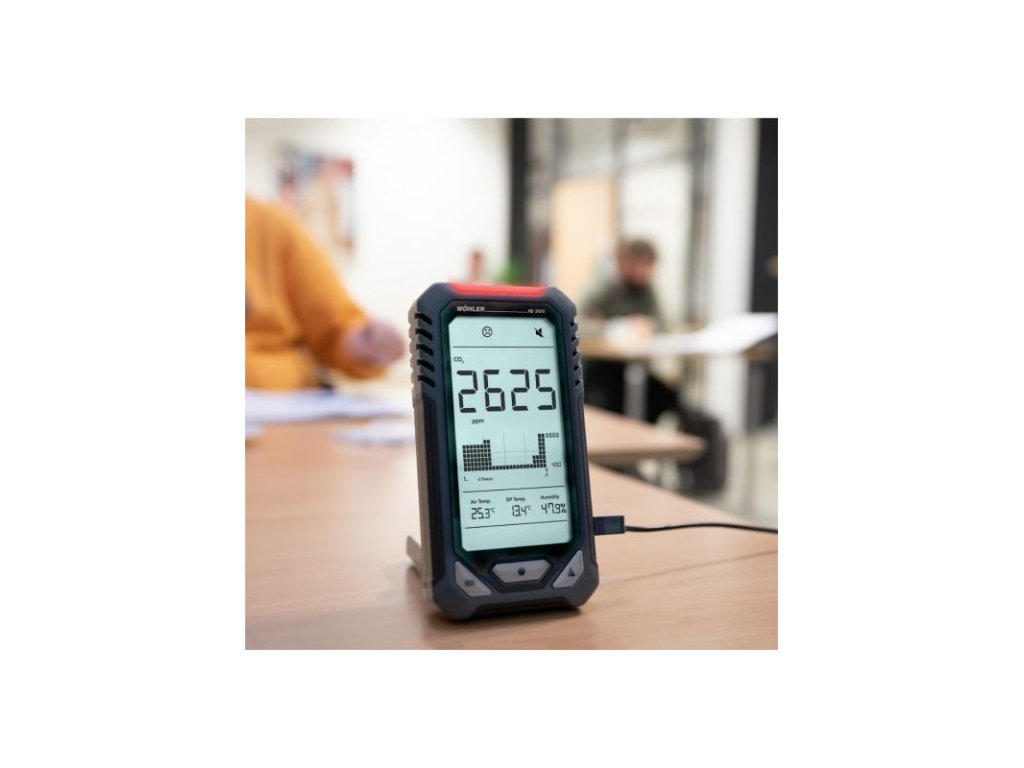 Merací prístroj Wöhler IQ 300 je ideálny pre sledovanie kvality vzduchu v učebniach, čakárňach, seminárných miestnostiach apod. Na základe nameraných údajov kedykoľvek vyhodnotí kvalitu ovzdušia. Dôležitým faktorom pro sledovania kvality vnútorného vzduchu je obsah CO2. Dýchaním ľudia uvolňujú do vnútorného ovzdušia vlhkost a CO2, / oxid uhličitý / a pokiaľ sú nemocný, tak taktiež i vírusy. Pri vysokom obsahu CO2 vo vzduchu možno predpokladať, že vzduch je znečistený i inými látkami a z tohto dôvodu je potrebné miestnosť vyvetrať.